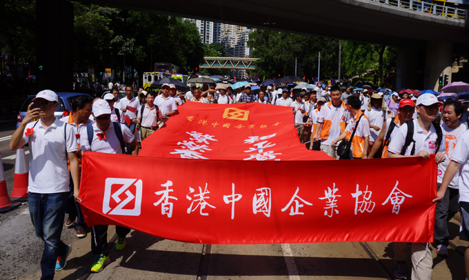 8月17日下午,在超過32度高溫的天氣情況下,集團(tuán)領(lǐng)導(dǎo)和在港各部司員工及部分員工家屬800余人,積極響應(yīng)香港中國(guó)企業(yè)協(xié)會(huì)的呼籲,參加了香港「保普選、反占中」大聯(lián)盟發(fā)起的「和平普選大遊行」,表達(dá)港中旅員工擁護(hù)「一國(guó)兩制」和基本法、依法實(shí)施普選的願(yuàn)望和訴求。張學(xué)武董事長(zhǎng)和姜巖董事副總經(jīng)理到維園集會(huì)現(xiàn)場(chǎng)為大家加油鼓勁,張逢春總會(huì)計(jì)師、許慕韓副總經(jīng)理等集團(tuán)領(lǐng)導(dǎo)和員工隊(duì)伍一起全程參加了遊行。