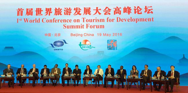 由中國(guó)政府和聯(lián)合國(guó)世界旅遊組織共同主辦的首屆世界旅遊發(fā)展大會(huì)于5月19日在北京開(kāi)幕。全球107個(gè)國(guó)家、600名外國(guó)代表以及國(guó)內(nèi)有關(guān)部委、各省區(qū)市有關(guān)負(fù)責(zé)人,旅遊研究機(jī)構(gòu)及院校、大型旅遊企業(yè)負(fù)責(zé)人近千人齊聚北京,共商世界旅遊業(yè)發(fā)展大計(jì)。本次大會(huì)以「旅遊促進(jìn)發(fā)展與和平」?fàn)?wèi)主題,舉辦了開(kāi)幕式、主旨演講、高峰論壇、二十國(guó)集團(tuán)旅遊部長(zhǎng)會(huì)議等活動(dòng)。