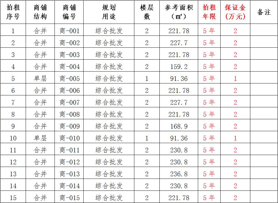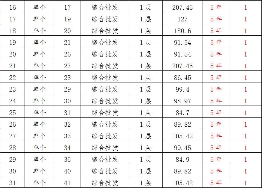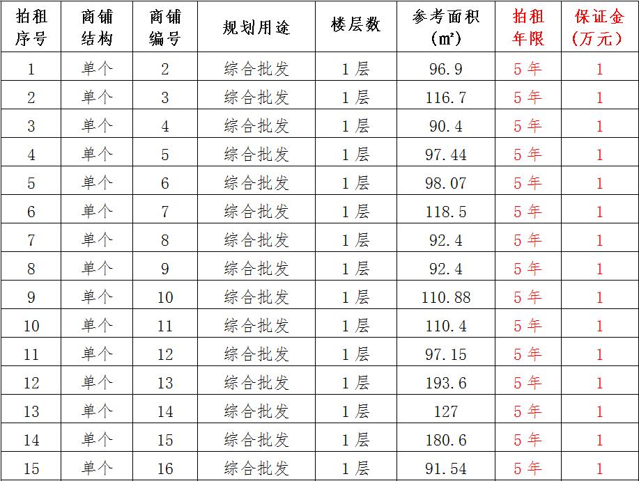 (一)拍租位于鎮(zhèn)雄縣南臺(tái)街道呢嚕坪安置點(diǎn)7棟獨(dú)立商鋪使用權(quán)。以棟為單位拍租。詳見(jiàn)下表:
