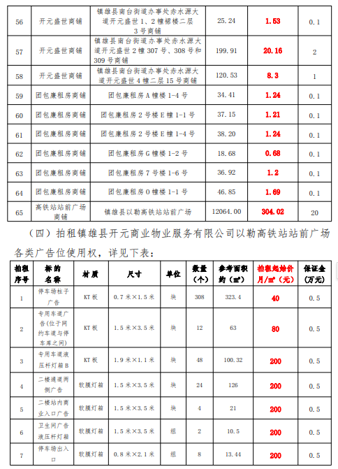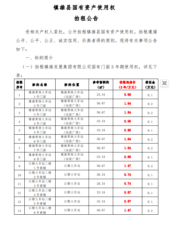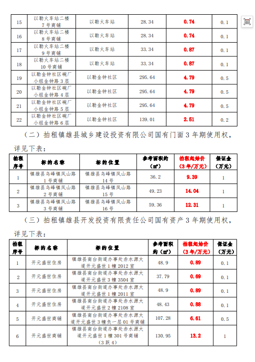 鎮(zhèn)雄縣國有資產使用權拍租公告